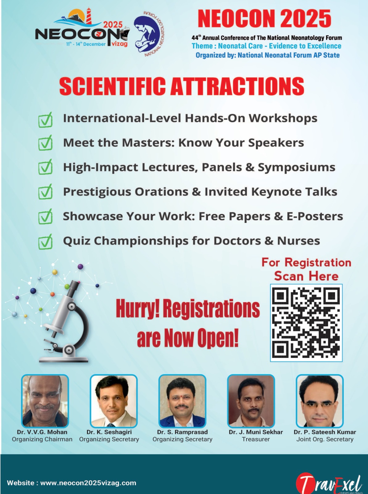 This prestigious gathering promises an enriching academic experience, bringing together Neonatologists, Pediatricians, Healthcare Professionals, and Researchers from across the country. With a comprehensive blend of foundational knowledge and the latest advancements in neonatal care, NEOCON 2025 will offer a dynamic platform for learning, collaboration, and inspiration.